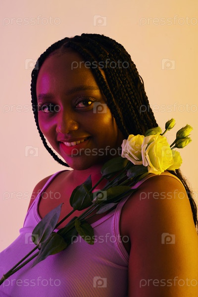 Черная женщина с букетом роз