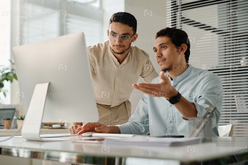 Бизнесмены обсуждают онлайн-данные