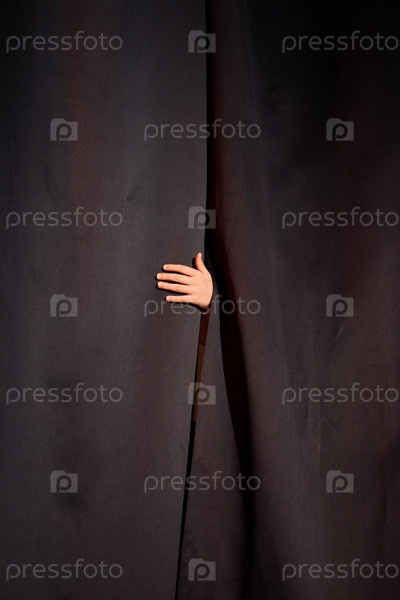 Держащий занавес в театре рукой