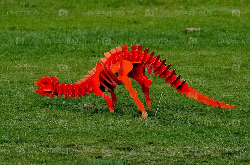 Элекмонар. Россия. Май 11, 2023. Необычные скульптуры доисторических животных из наборных пластин в палеопарке Горного Алтая