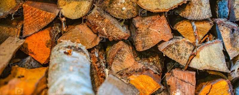 Дрова, сложенные в поленницу, размытый фон, текстура