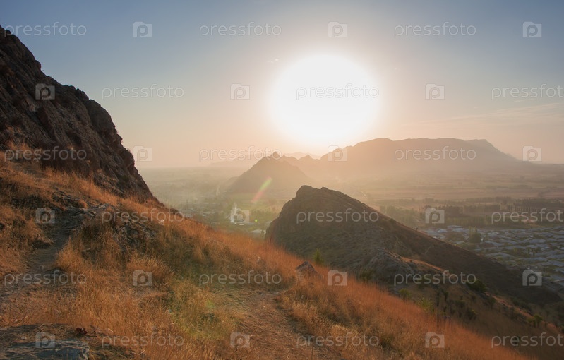 Вид на закат с горы Сулайман-Тоо, Ош, Киргизия