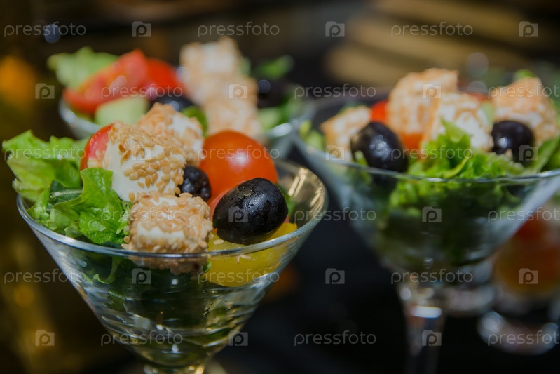Салат для фуршета, на золотом фоне