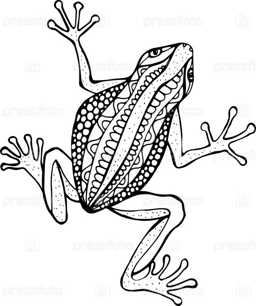 Лягушка декоративная , черно-белый клипарт без фона для раскрашивания