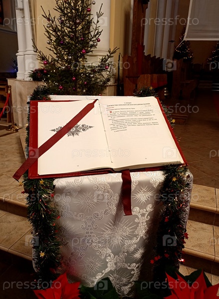 Книга Евангелие от Луки в Рождество в Соборе Непорочного зачатия Девы Марии в Москве