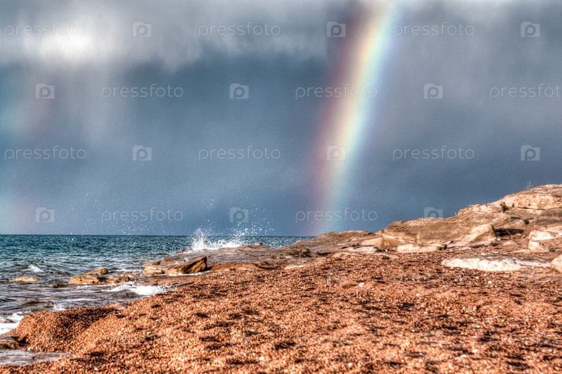 Радуга после грозы на озере Иссык-Куль