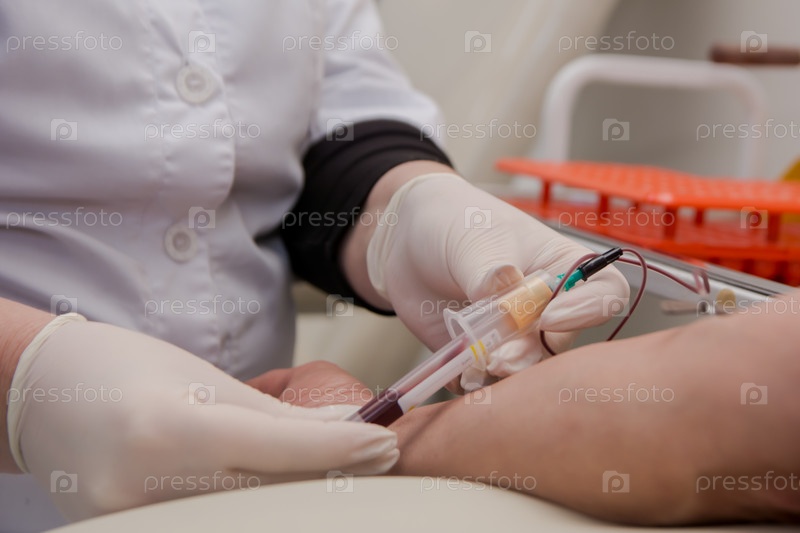 Врач берет кровь из вены у пациента с помощью системы для анализа