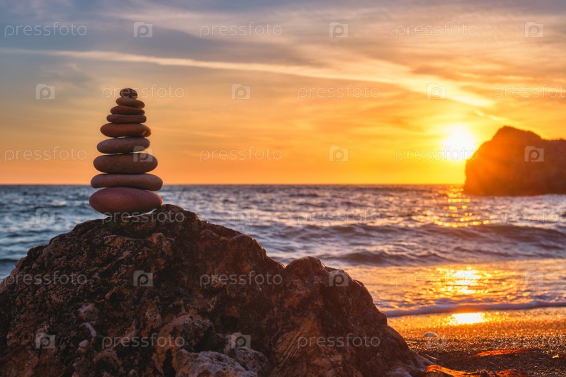 Концепция баланса и гармонии - каменная стопка на пляже