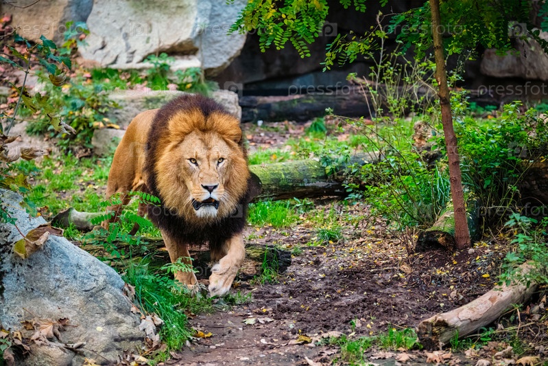Лев в лесу джунглей на природе