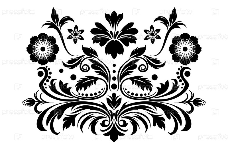 Подробные завитки и кривые цветочный черный орнамент
