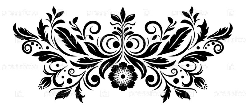 Подробные завитки и кривые цветочный черный орнамент
