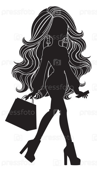 Силуэт девушки с сумкой для покупок