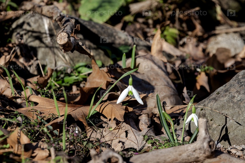 В горах растет красивая, редкая снежинка (Galanthus nivalis)