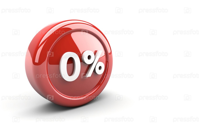Красная кнопка на белом сплошном фоне с белыми буквами 0 процентов