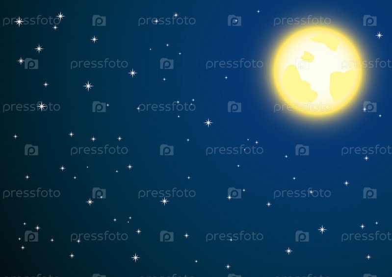 Ночное небо с полной луной и звездами