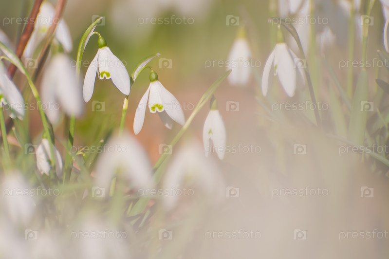 Весенние цветы подснежники цветут и размываются