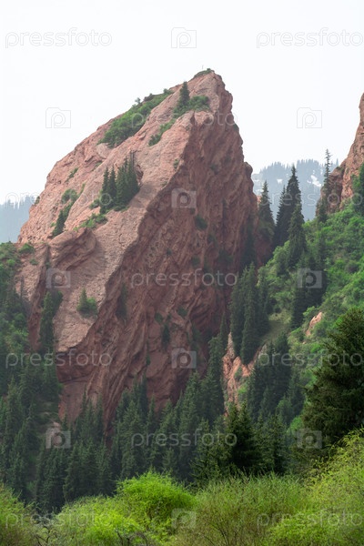 Горные луга и леса в конце ущелья Джети-Огуз, Кыргызстан