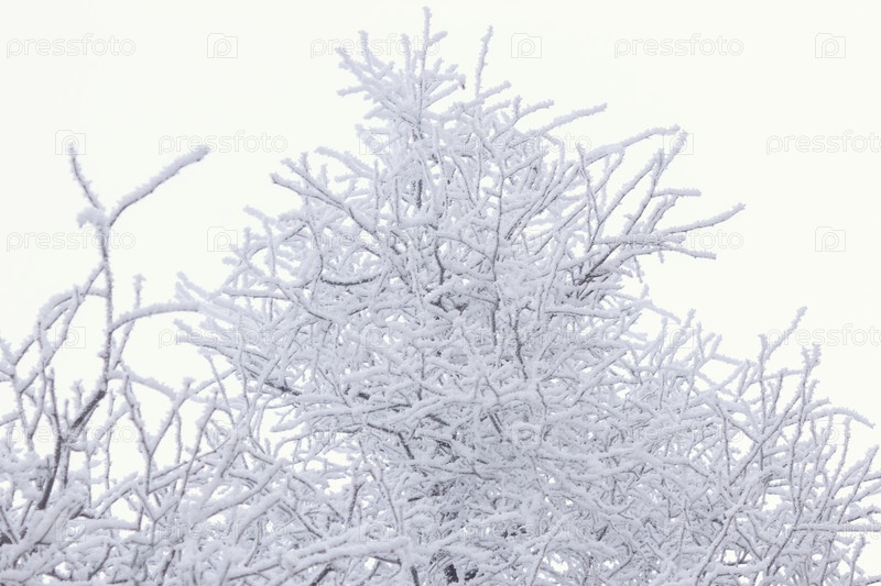 Зимние морозные ветки на белом фоне
