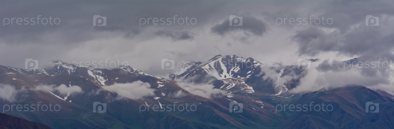 Снежные горные вершины Кыргызстана, горный ледник в Центральной Азии