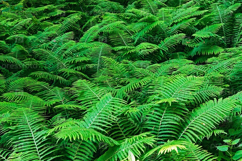 Зеленые кусты папоротника в лесу в летний день