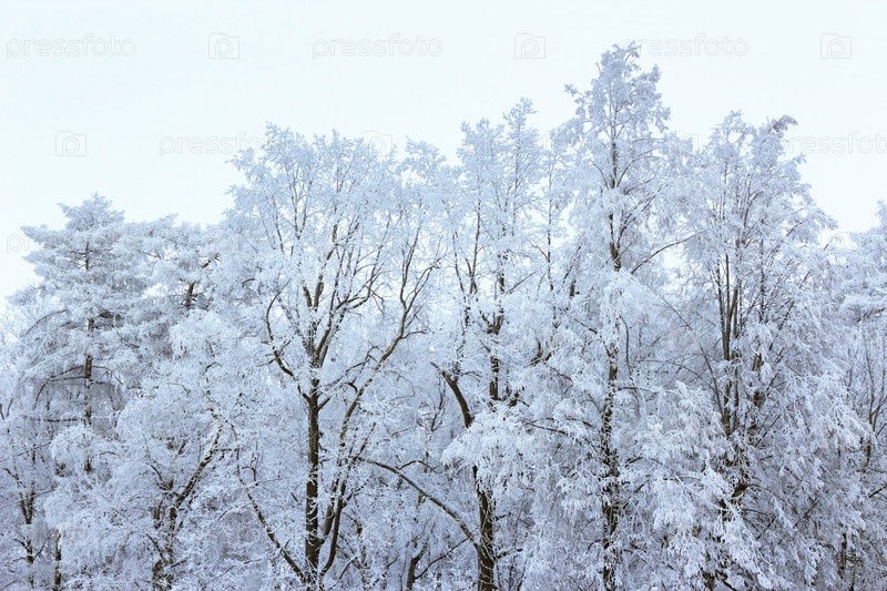 Зимние морозные деревья на белом фоне