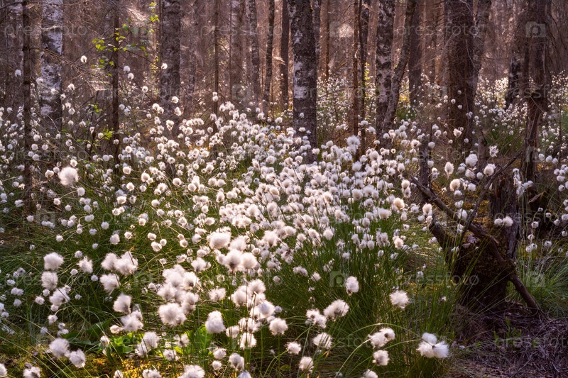 Необычные белые пушистые цветы Пушица растет в лесу на болоте.Лето.Необычное белое пушистое Плюшевые цветки растут в лесу в болотном месте.Лето