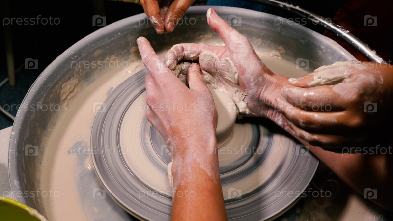 Гончар лепит из белой глины прекрасное творение. Уроки мастера в открытом классе. Гончарная мастерская