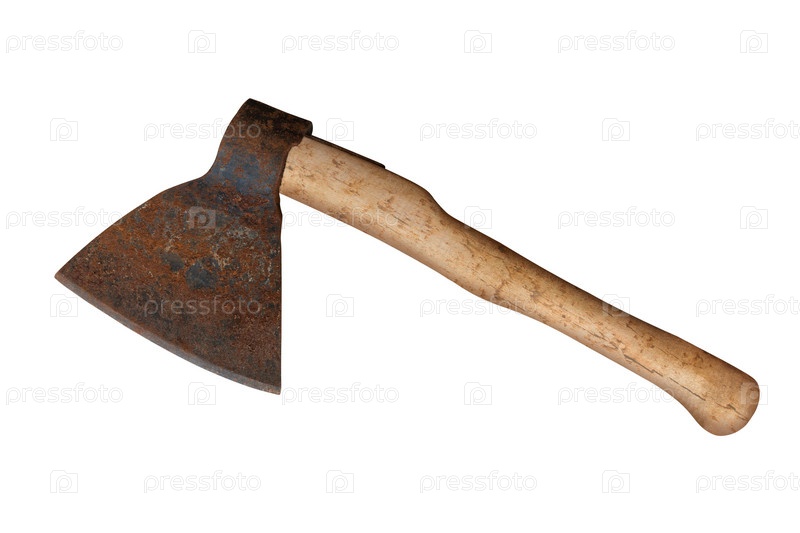 Ржавый большой топор на изолированном белом фоне