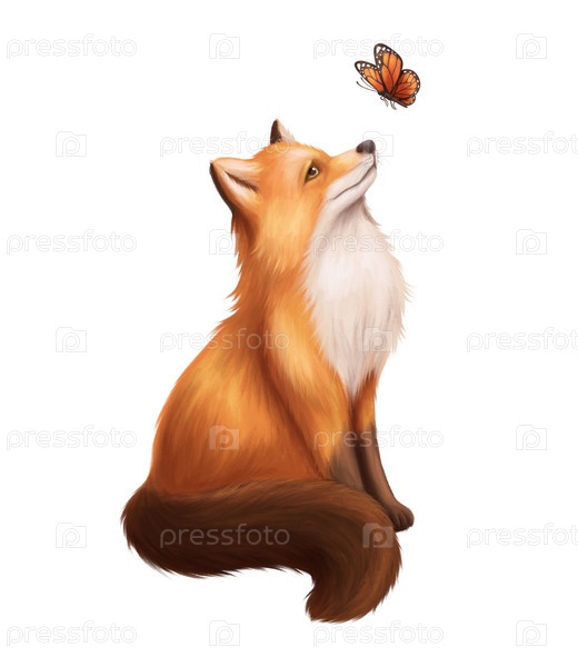 Лиса смотрит на бабочку рисунок