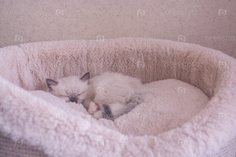 Красивый маленький котенок Рэгдолл отдыхает дома на диване