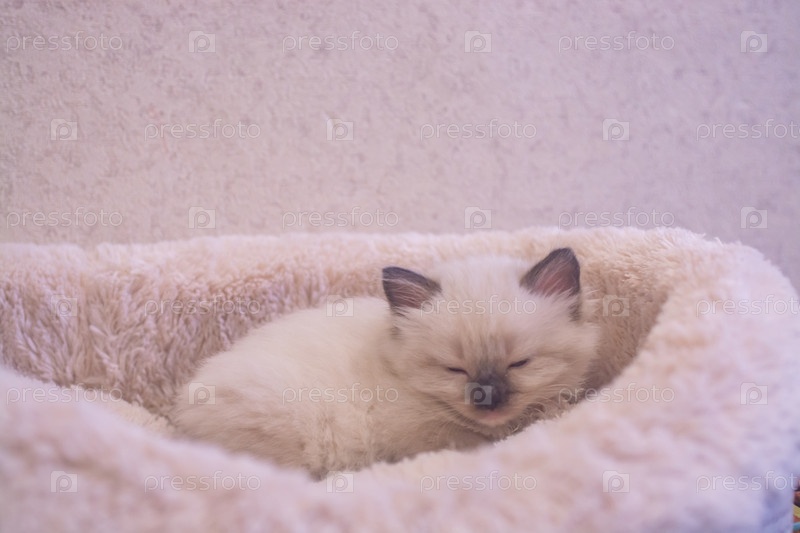 Красивый маленький котенок Рэгдолл отдыхает дома на диване