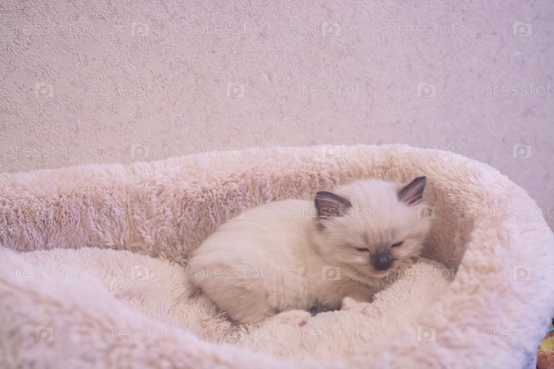 Красивый маленький котенок Рэгдолл отдыхает дома на диване