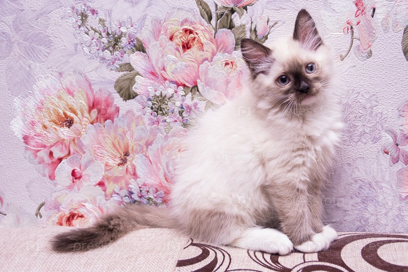 Красивый маленький котенок Рэгдолл отдыхает дома на диване