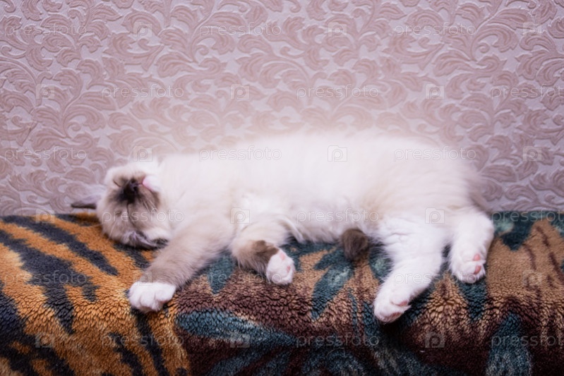 Красивый маленький котенок Рэгдолл отдыхает дома на диване