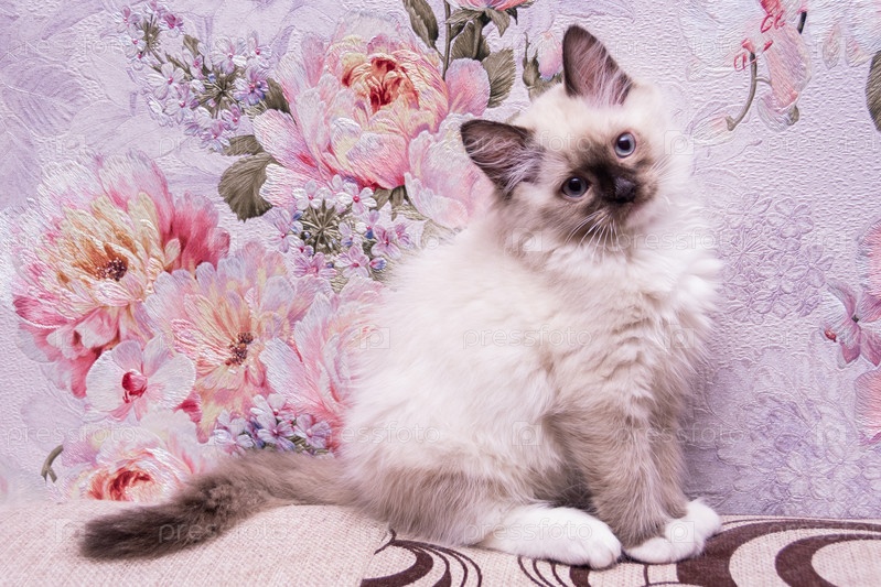 Красивый маленький котенок Рэгдолл отдыхает дома на диване