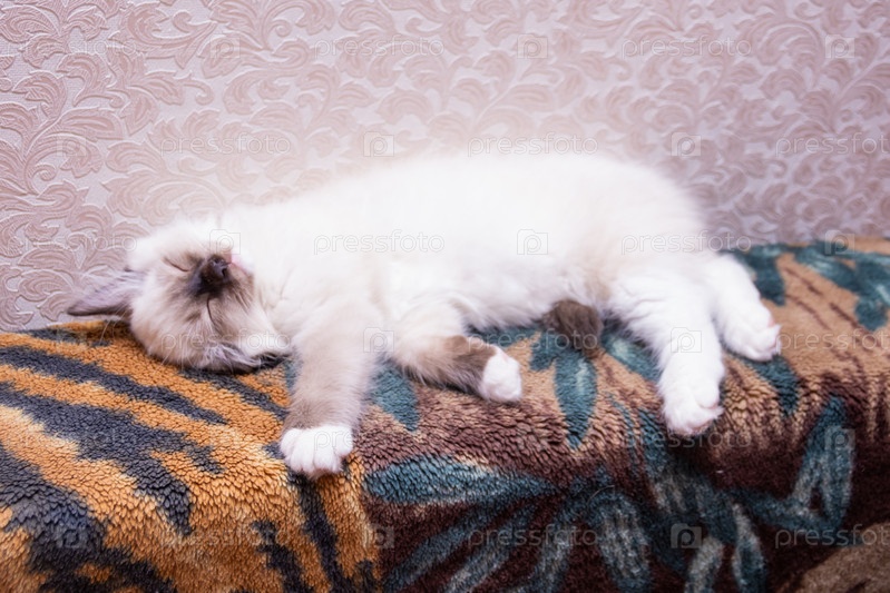 Красивый маленький котенок Рэгдолл отдыхает дома на диване