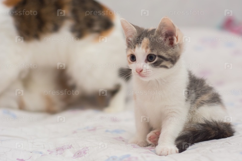 Двухмесячный котенок сидит и смотрит прямо в камеру