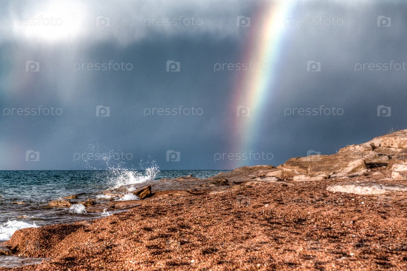 Радуга после грозы на озере Иссык-Куль
