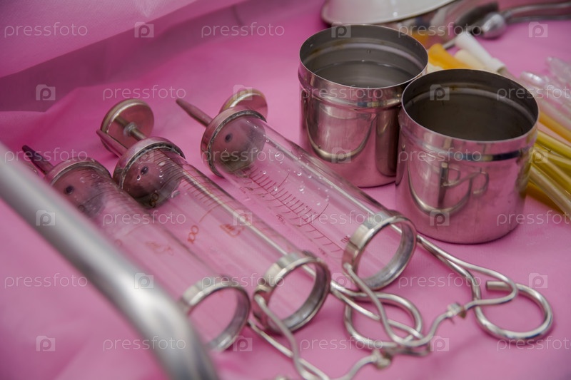Большой стеклянный шприц, медицинское оборудование