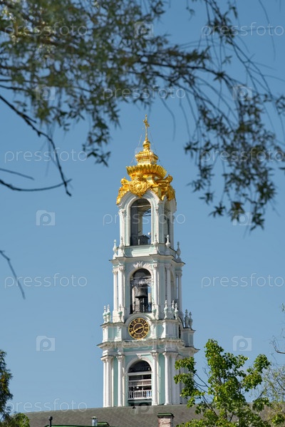 Сергиев Посад. Россия. 07 июня 2022 года. Вид на центральную Колокольню православной Троице-Сергиевой лавры. Знаменитый монастырь был основан в 1337 году.Сергиев Посад. Россия. 07 июня 2022 года. Вид на центральную Колокольню православной Троице-Сергиевой