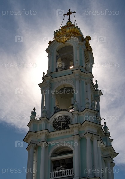 Сергиев Посад. Россия. 07 июня 2022 года. Вид на центральную Колокольню православной Троице-Сергиевой лавры. Знаменитый монастырь был основан в 1337 году.Сергиев Посад. Россия. 07 июня 2022 года. Вид на центральную Колокольню православной Троице-Сергиевой
