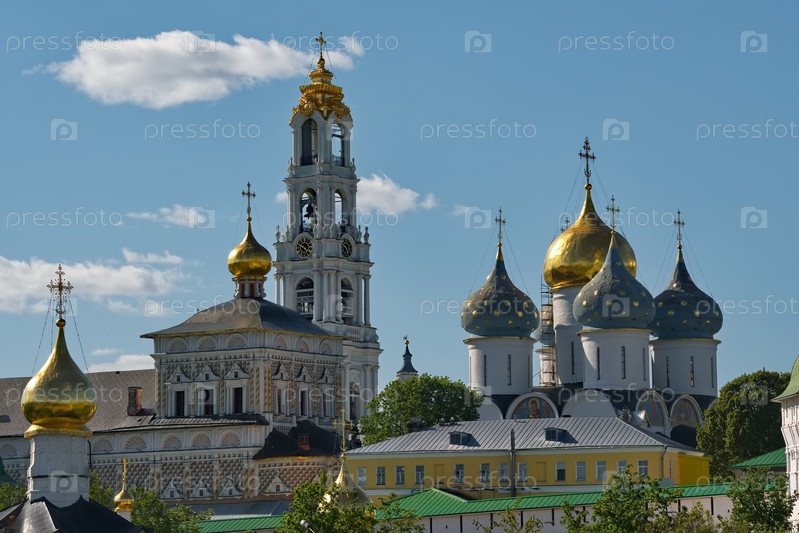 Сергиев Посад. Россия. 07 июня 2022 года. Вид на центральную Колокольню православной Троице-Сергиевой лавры. Знаменитый монастырь был основан в 1337 году.Сергиев Посад. Россия. 07 июня 2022 года. Вид на центральную Колокольню православной Троице-Сергиевой