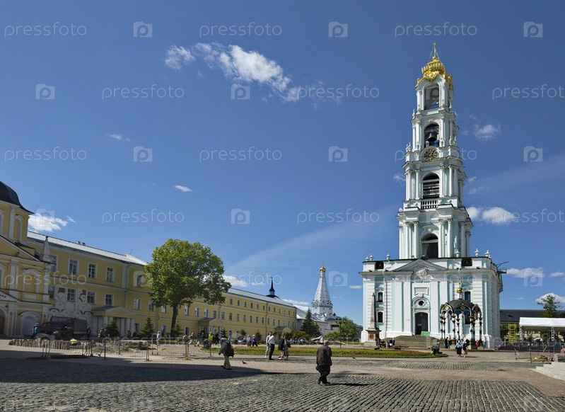 Сергиев Посад. Россия. 07 июня 2022 года. Вид на центральную Колокольню православной Троице-Сергиевой лавры. Знаменитый монастырь был основан в 1337 году.Сергиев Посад. Россия. 07 июня 2022 года. Вид на центральную Колокольню православной Троице-Сергиевой