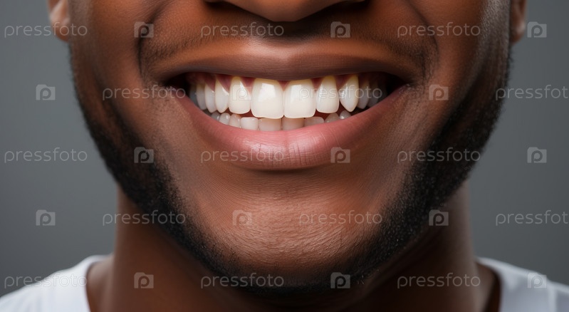 Крупным планом студия сняла африканского парня, указывающего пальцем на белую блестящую зубастую улыбку, концепцию отбеливания зубов, стоматологическую помощь, стоматологические услуги и концепцию рекламы продуктов