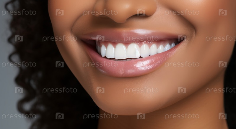 Улыбающаяся молодая красивая девушка с чистой идеальной кожей крупным планом. Концепция красоты, ухода и стоматологии