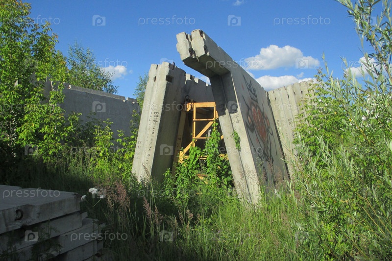 Бетонные блоки на заброшенной стройке