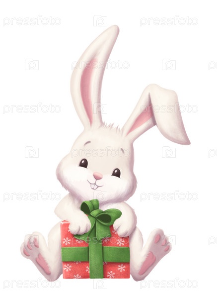 Кролик с подарком рисунок