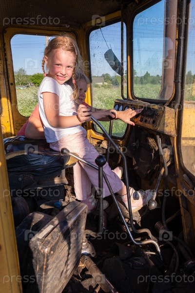 Советский сельскохозяйственный и промышленный гусеничный трактор, выпускавшийся Челябинским тракторным заводом Children climb on the tractor CHTZ-URALTRAK T-130