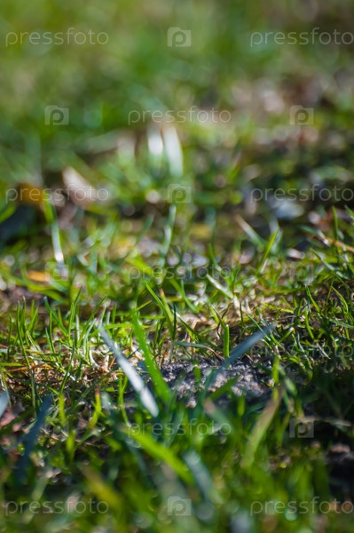 Свежая зеленая весенняя трава вышла после снега