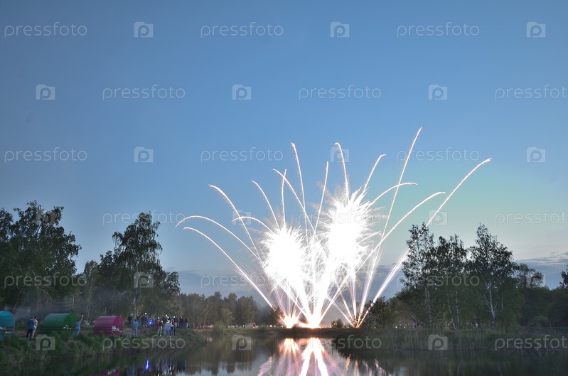 Салют посвященный Дню России в городе Омске, в парке 30 лет ВЛКСМ
